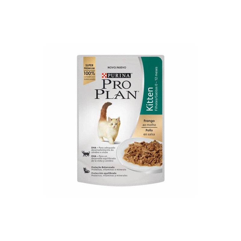 Pro Plan Pouch Kitten Pollo en Salsa contiene proteína de pollo de alta calidad para una mejor digestión.